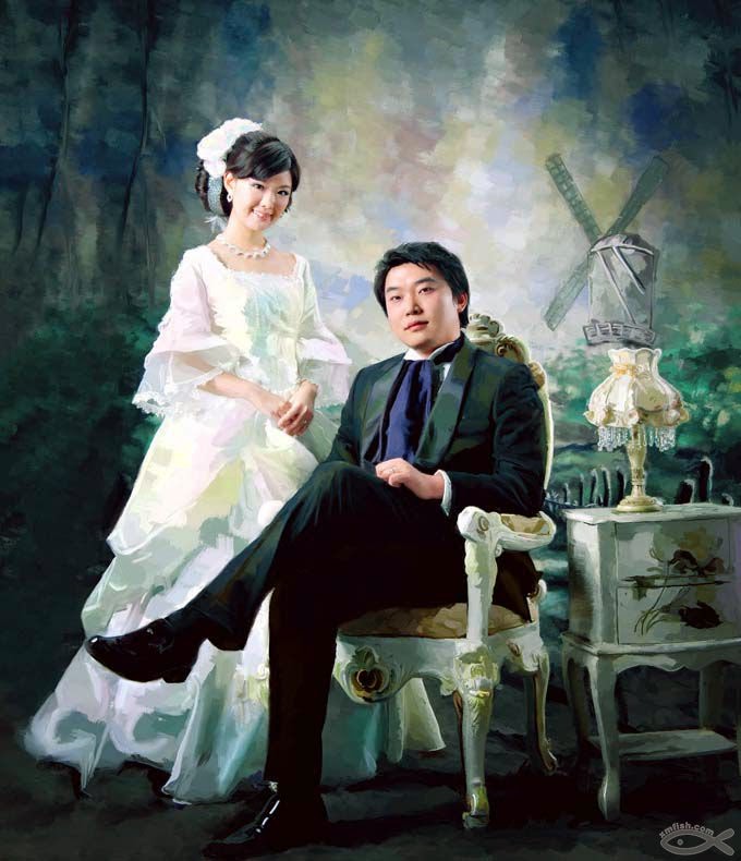 Painting wedding photos are good collection for eternal love. Just like the famous painting: "Mona Lisa's smile", perfect work of art paintings can stand for social status. Wedding paintings deduce the beautiful princess in the fairy tale, dreaming that a picture of him and me. In addition with the help of painting color, light, strokes, texture and elegant painting frame, artistic charm is far better than the photo itself. Because it is not only a simple image, but also your unique expression of emotions.